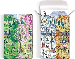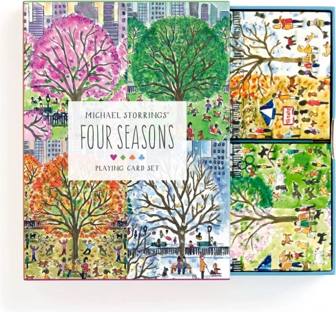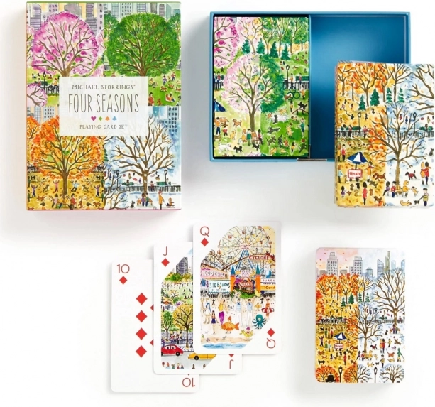 Ta dizajnerski komplet prinaša v vaše igralne večere edinstveno atmosfero. Vsako škatlico krasijo izvirne ilustracije mestnih prizorov in krajin, navdihnjenih s pomladjo, poletjem, jesenjo in zimo. Dva popolna kompleta sta shranjena v trdni izvlečni škatli z magnetnim zapiranjem za preprosto in varno shranjevanje.