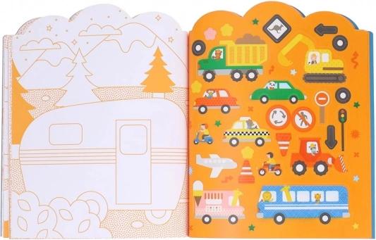 Petit Collage prinaša ne le veselje pri barvanju, temveč tudi neskončne možnosti za ustvarjalno izražanje zahvaljujoč priloženim nalepkam. Vsaka stran ponuja nov svet za raziskovanje ter podpira domišljijo, ustvarjalnost in samostojno igro. Vaš otrok lahko na strani z vozili dodaja drevesa, živali ali celo zgradi celo mesto okoli svojih vozil.