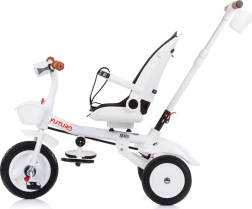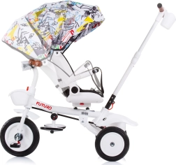 Tricikel Chipolino Futuro 2v1 se prilagodi trenutnim potrebam otroka in staršev. V načinu s starševskim vodenjem omogoča popoln nadzor, kasneje pa je možno preiti na samostojno poganjanje. Sedež lahko obrnete v smeri ali proti smeri vožnje in nudi tudi 2 naklonska položaja za večje udobje na daljših sprehodih.