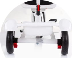 Varnostni pasovi z mehkimi blazinicami, zaščitni lok in zaščita sprednjega kolesa varujejo male voznike. Širok oblazinjen sedež in strešica z zaščito pred soncem zagotavljata udobje v vsakem vremenu.