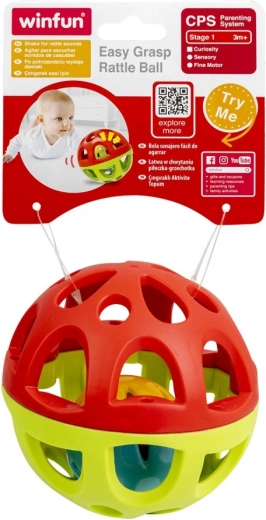 Barvita ropotulja žogica zabava že najmlajše. Odlična za razvijanje prijema in drugih spretnosti.