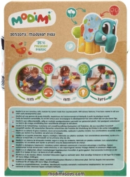 Odkrijte slončka Ellie – ljubkega spremljevalca za prve raziskave sveta čutov. Modularni sistem Modimi uporablja senzorične elemente, ki razvijajo tip, sluh in fino motoriko. Materiali iz reciklirane plastike zagotavljajo prijaznost do narave in varno igro.