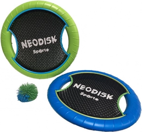 Neodisk Sporto je dinamičen set za hitro in nezahtevno zunanjo igro. Vsak disk ima čvrst, a lahek rob ter prožno mrežo za preprosto lovljenje in odbijanje mehke žogice. Zahvaljujoč preprostim pravilom se v igro takoj vključi vsa družina.