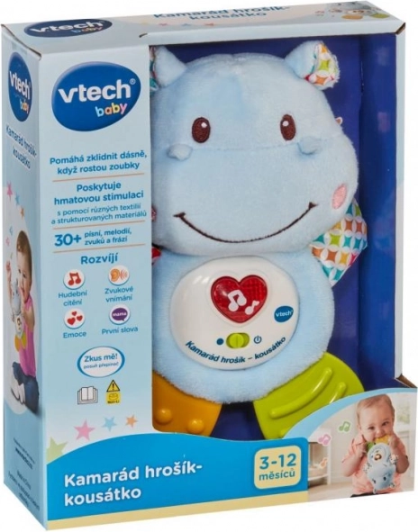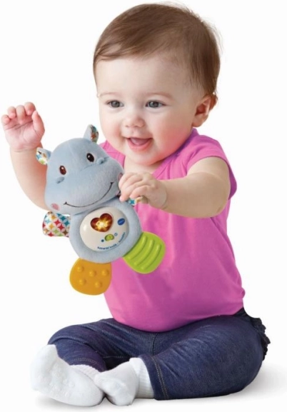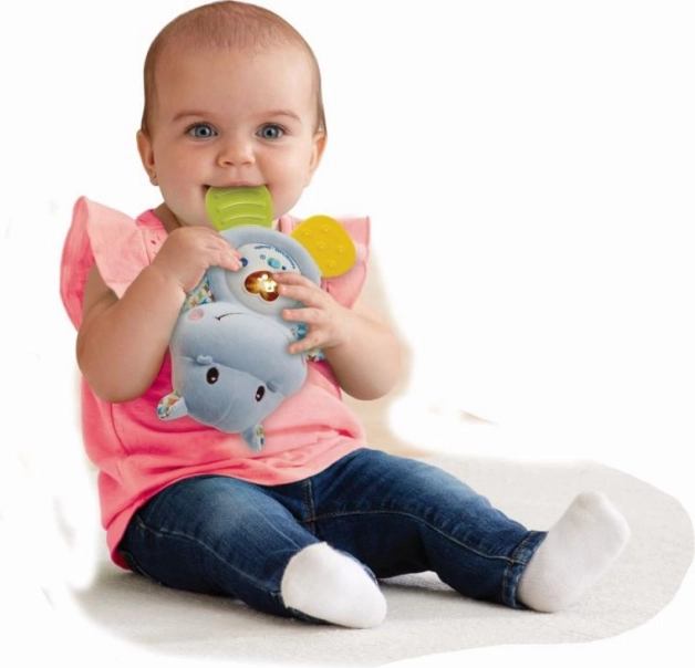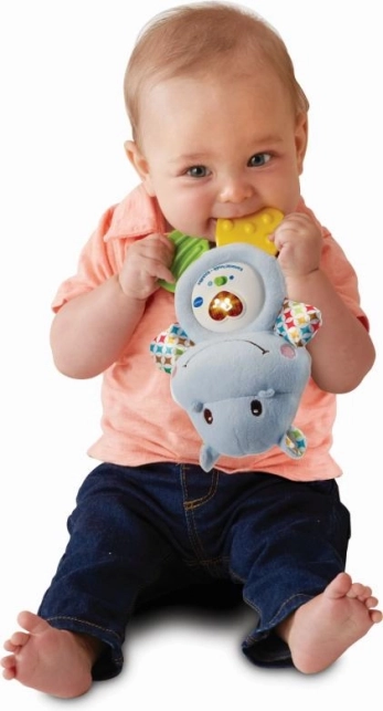 Vtech Hippo Prijatelj je zasnovan tako, da zagotavlja zabavo in pomoč pri rasti otroških zobkov. Igrača je opremljena z mehkimi deli za masažo dlesni in lahko oprijemljivimi ročkami, kar je idealno za majhne otroške roke. Hippo je lahek in prijeten na dotik, ko pritisnete na njegov trebuh s svetlečim srčkom, se zasveti in ponudi interaktivno zabavo. Poleg tega igrača ponuja: