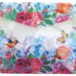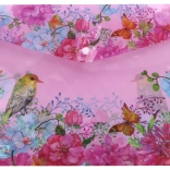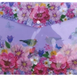Praktična mapa z gumbom velikosti 35 × 25 cm z nežnim cvetličnim motivom »cvetje«. Ponuja enostavno zapiranje na gumb, zanesljivo zaščito dokumentov in je na voljo v 4 barvnih izvedbah za vsakodnevno uporabo doma, v šoli in v pisarni.