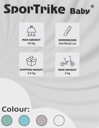 Poganjalec SporTrike PettyTrike je idealno prvo “kolo” za otroke približno od 1 do 3 let. Zahvaljujoč štirim kolesom in nizki zasnovi nudi odlično stabilnost, zato se lahko otroci osredotočijo na razvoj ravnotežja in motorike brez strahu pred padcem. Lahka konstrukcija olajša upravljanje in prenašanje staršem.