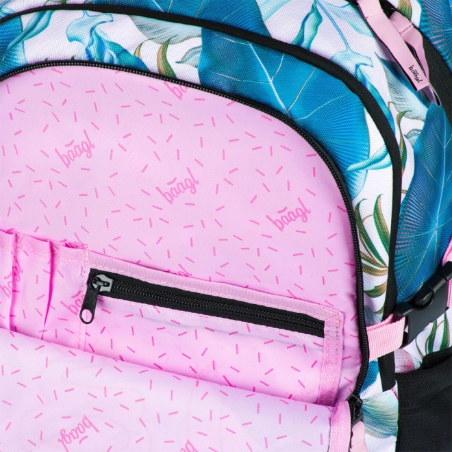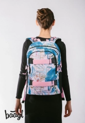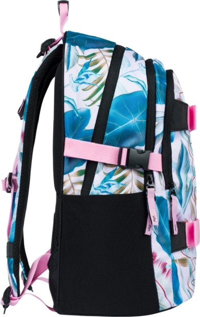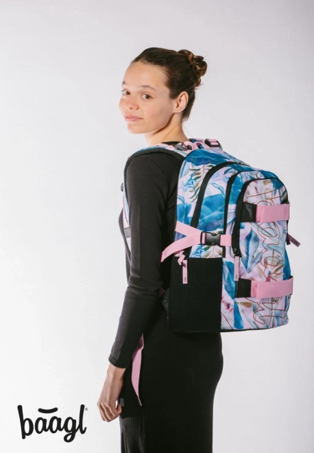 BAAGL šolski nahrbtnik Skate Leafs združuje slog in funkcionalnost. Ergonomsko oblikovano hrbtišče in popolnoma nastavljivi naramni, prsni ter bočni kompresijski trakovi zagotavljajo udobno nošenje in odlično prileganje postavi. Vzdržljiv vodoodporen material ščiti vsebino, odsevni elementi pa povečajo vidnost v mraku.