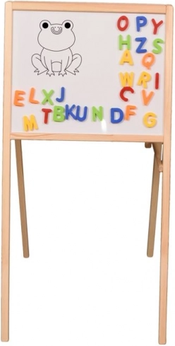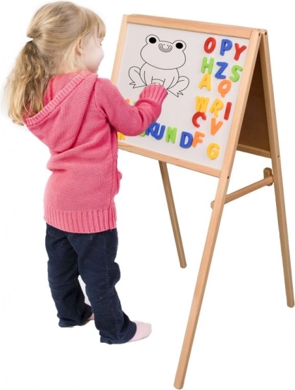 Spodbujajte ustvarjalnost in učenje skozi igro. Otroška dvostranska tabla združuje kredno površino za klasično risanje z magnetno suho brisljivo stranjo za pisanje z markerjem in delo z magneti. Zaradi dveh površin je idealna za razvoj pisanja, branja in računanja.