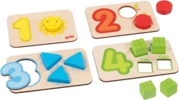 Lesena vstavljanka GOKI z motivom števil 1–4 je odlična izbira za prvi stik s številkami in osnovnimi oblikami. Zahvaljujoč trpežni izdelavi in izrazitim barvam bodo otroci igro hitro vzljubili, hkrati pa naravno urili koordinacijo oko–roka, logično razmišljanje in domišljijo.