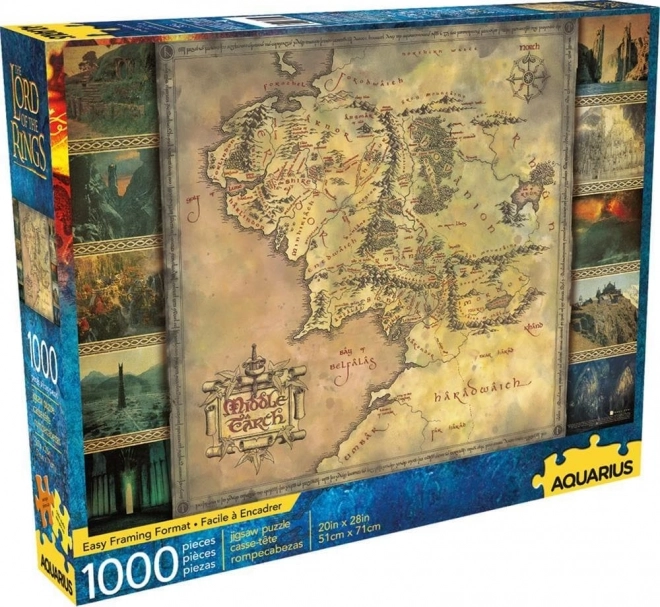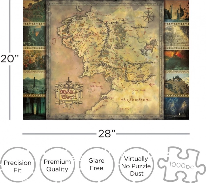 Odkrijte čar sveta Gospodar prstanov z detajlnim zemljevidom Srednjega sveta na kakovostni sestavljanki s 1000 kosi. Idealno za ljubitelje domišljije in sestavljanja; po končani sestavitvi meri približno 71 × 51 cm in je odlična za uokvirjanje.