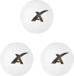 Tri plastične žogice z gladko površino za dosleden odboj in dolgo življenjsko dobo.