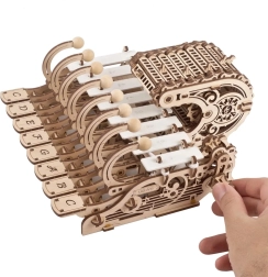 Z mehaničnim modelom Ugears Celesta lahko raziskujete čar glasbe. Model vključuje xylofon, ki ga upravljate s tipkovnico, katero lahko programirate s čepki in vrtite ročico. Model ni le estetsko privlačen, ampak tudi popolnoma funkcionalen, kar omogoča interaktivno igranje in izobraževanje.
