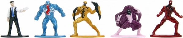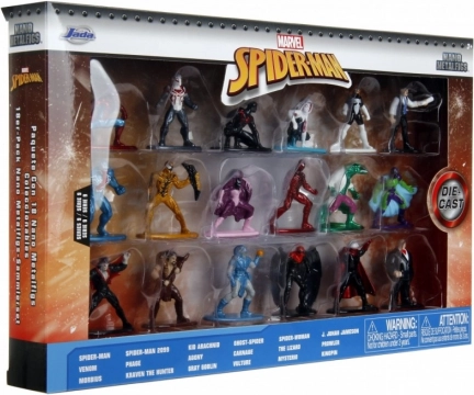 V pakiranju ne manjkajo ikonični junaki in sloviti zlikovci: Spider‑Man, Spider‑Man 2099, Kid Arachnid, Ghost‑Spider, Spider‑Woman, J. Jonah Jameson, Venom, Phage, Agony, Carnage, The Lizard, Prowler, Morbius, Kraven the Hunter, Gray Goblin, Vulture, Mysterio in Kingpin. Set je odlično darilo za male in velike ljubitelje stripov in filmov.