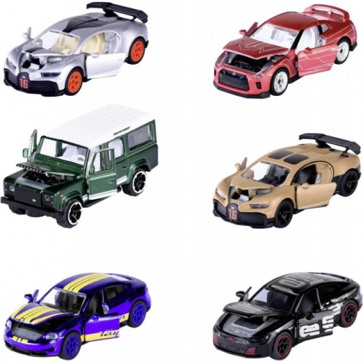- Mešanica 6 modelov: AUDI RS e-tron GT (črna), BUGATTI Chiron Pur Sport (rjava/srebrna), LAND ROVER Defender 110 (zelena), NISSAN GT-R (rdeča), PORSCHE Taycan Turbo S (modra)