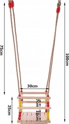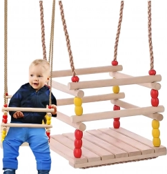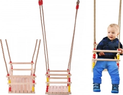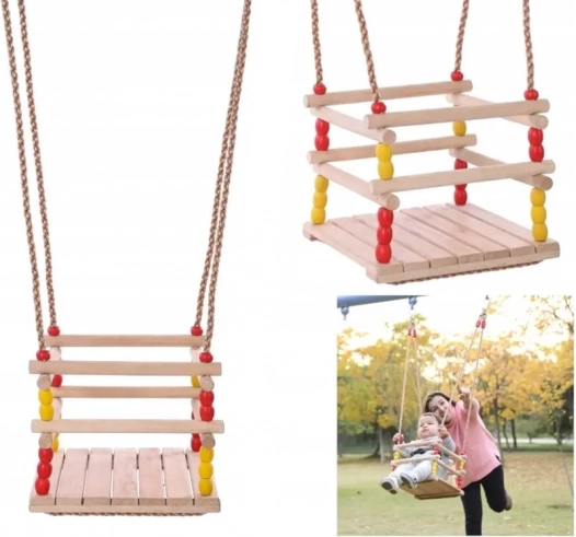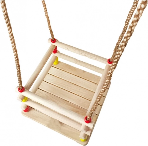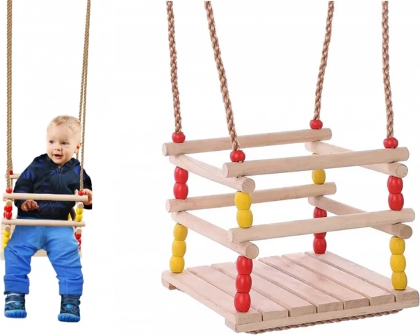 Ta lesena gugalnica s sedežem 30 × 30 cm in sprednjo varnostno ograjo je zasnovana za majhne otroke. Zahvaljujoč gladko brušenemu lesu je sedenje udobno in prijetno na dotik. Po ustrezni impregnaciji je primerna za notranjo in zunanjo uporabo – obesite jo lahko na drevo, pergolo ali samostojno konstrukcijo.