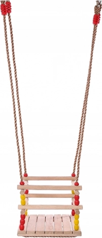 Močne pletene vrvi z obročki in kovinskimi deli zagotavljajo stabilnost in varnost. Kompaktne dimenzije prihranijo prostor, gugalnico pa zlahka prestavite ali pospravite. Barvite kroglice dodajo igriv videz in otroci jo bodo hitro vzljubili.