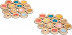 To taktilno pexeso prinaša edinstven način, kako otroke motivirati k raziskovanju različnih struktur in materialov. Vsak leseni disk ima drugačno teksturo, zato se igralci učijo ujemati elemente zgolj po dotiku. Igra je idealna za otroke od 3 let in podpira fino motoriko, osredotočenost in sodelovanje.
