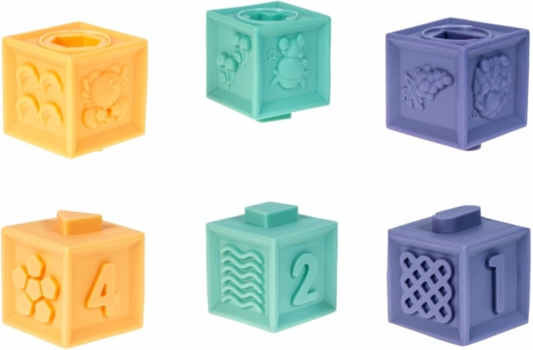 Igra s kockami podpira razvoj gibalnih spretnosti, pritegne s pastelnimi barvami in motivira otroke k igri. Izdelane so iz trpežnih in nestrupenih materialov.