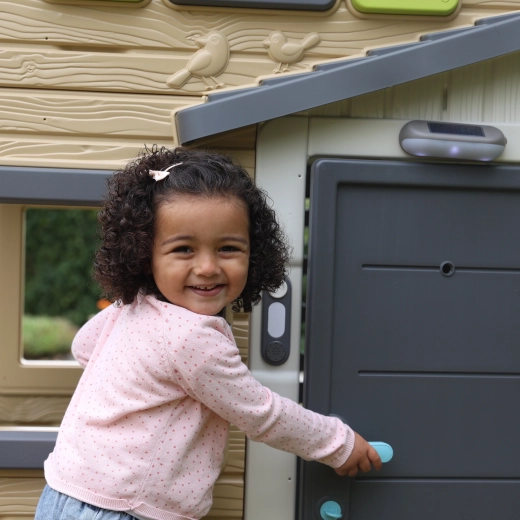 Namestitev je hitra in preprosta, zvonec pa je združljiv z aktualnimi vrtnimi hišicami SMOBY: Jolie, Lovely, Nature, Pretty, Neo Jura Lodge, Friends House, Friends House Evo, 4 Seasons Playhouse, Sweety Corner Playhouse, Garden House Playhouse, Chef House Playhouse, hišica na kolih. Potrebni sta le 2 bateriji AAA/LR03 (nista priloženi) in zabava se lahko začne.