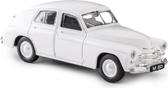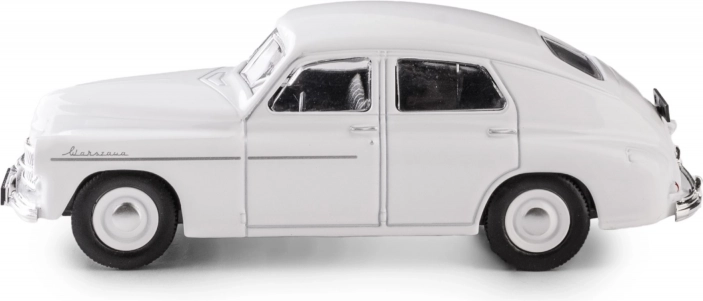 Odkrijte klasiko v čisto beli barvi: zbirateljski model WARSZAWA M20, ki verno povzema dizajn prvih povojnih limuzin. Kovinska konstrukcija DIE-CAST daje modelu težo in vzdržljivost, medtem ko nežni plastični detajli poudarijo avtentičen videz – od maske hladilnika do oblikovanih odbijačev.