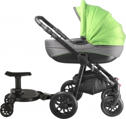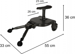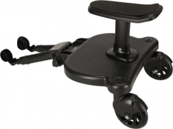 Praktična priključna stopnica s sedežem za starejšega sorojenca spremeni vaš voziček v rešitev za dva otroka. Ponuja vožnjo sedenje ali stanje, ima univerzalni priklop, hitro montažo brez orodja in nosilnost 25 kg. Priložen je pašček za obešanje na voziček, ko je ne uporabljate.