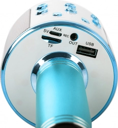 Ta vsestranski karaoke mikrofon združuje mikrofon, zvočnik in MP3-predvajalnik v enem. Zaradi Bluetooth povezave ga zlahka seznanite s telefonom ali tablico (Android/iOS), po želji pa uporabite priloženi USB–MicroUSB kabel. Vgrajeni FM radio in reža za microSD širita možnosti zabave doma, na zabavah in na poti.