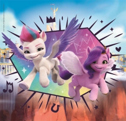 V pakiranju boste našli tri samostojne sestavljanke s priljubljenimi motivi MY LITTLE PONY, vsaka s 48 kosi. Zahvaljujoč natančno izrezanim kosom in trpežni izvedbi je sestavljanje tekoče in prijetno – idealno za skupne trenutke z otroki ali samostojno igro.