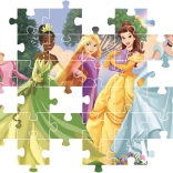 Barvita scena s priljubljenimi princesami prinaša otrokom veselje pri sestavljanju in jih spodbuja, da sliko uspešno dokončajo.