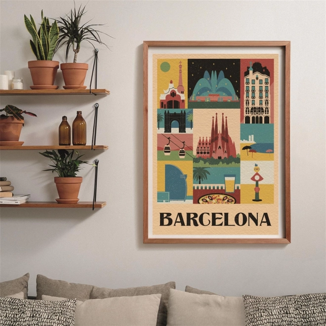 Stilska ilustracija mesta Barcelona iz kolekcije Style in the City izstopa z živahnimi barvami in podrobno risbo – idealno darilo za ljubitelje mest in arhitekture.