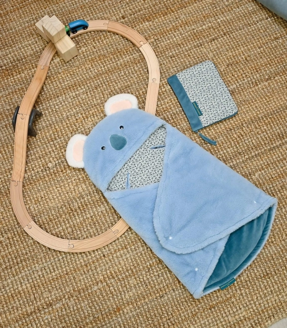 Mehka in topla plišasta odeja s kapuco iz kolekcije Yoca le Koala je idealna za dojenčke od rojstva. Ponuja občutek varnosti in toplino doma in na poti, ima praktične odprtine za pasove za voziček ali avtosedež ter preprosto zapenjanje s pritiskači. Izdelana je iz vrhunskega materiala z deležem recikliranih vlaken in v skladu z evropskimi standardi CE.