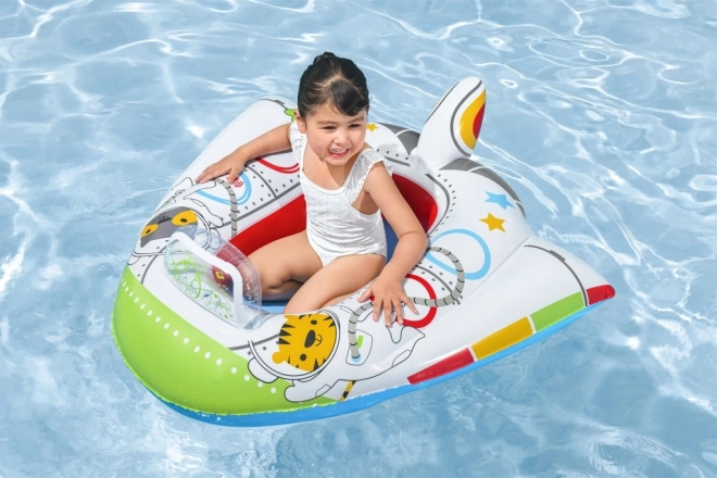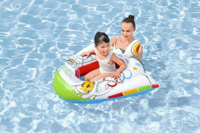 Pripravite se na avanturo z napihljivim čolnom Bestway Funspeakers Vesoljska ladja, ki navdušuje s svojim barvitim dizajnom in zabavnim vesoljskim motivom. Z merami 1,04 m x 99 cm in maksimalno nosilnostjo 45 kg, je idealen za manjše otroke, ki se radi zabavajo v vodi.