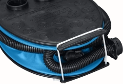 Lahka in priročna nožna tlačilka se zaradi nizke mase in paščka za cev zlahka shranjuje in prenaša – idealna za kampiranje in potovanja.