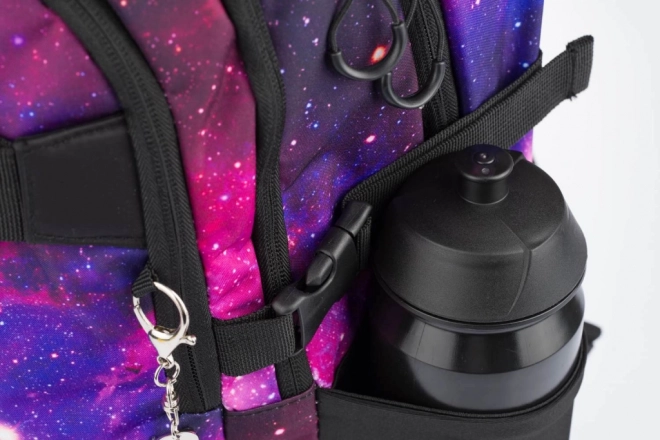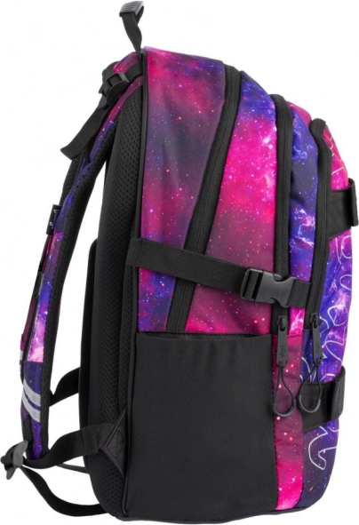 Odkrijte popolno kombinacijo funkcionalnosti in sloga. Šolski set BAAGL Skate Galaxy prinaša vzdržljiv nahrbtnik s tridelno razporeditvijo, organizatorjem in podloženim žepom za 15" prenosnik ali tablico. Ergonomsko oblikovan hrbtni del, popolnoma nastavljive naramnice, prsni in bočni kompresijski trakovi zagotavljajo zdravo in udobno nošenje ves dan. Sprednji trakovi služijo za pritrditev skateboarda, bočna elastična žepa sprejmeta steklenico, odsevni elementi pa povečajo vidnost.