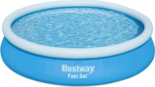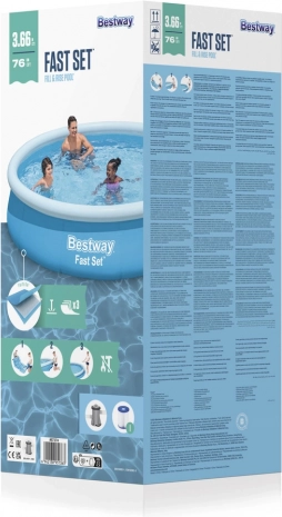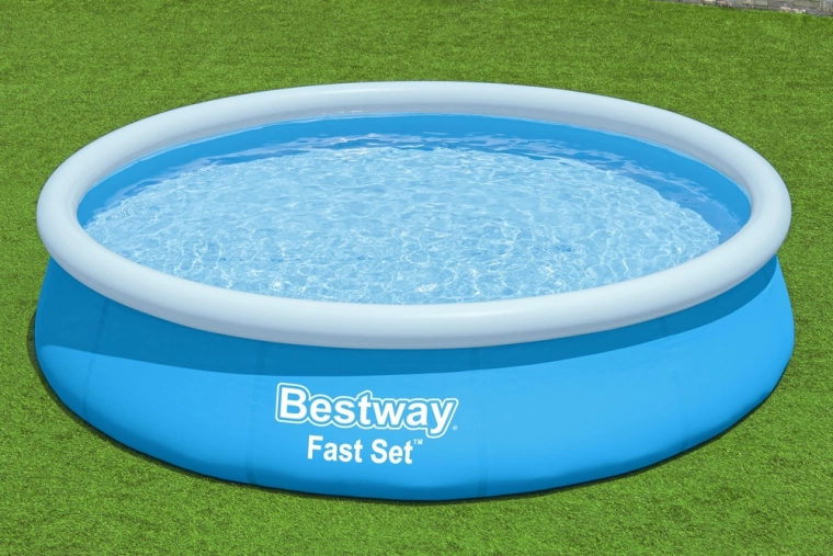 Napihljiv nadzemni bazen BESTWAY Fast Set je idealna izbira za hitro osvežitev na vrtu. Montažo opravite v nekaj minutah – napihnete zgornji obroč, spustite vodo in stene se same dvignejo. Zahvaljujoč čvrstemu materialu z odporno površinsko obdelavo bo kos vsakodnevnim družinskim vodnim radostim.