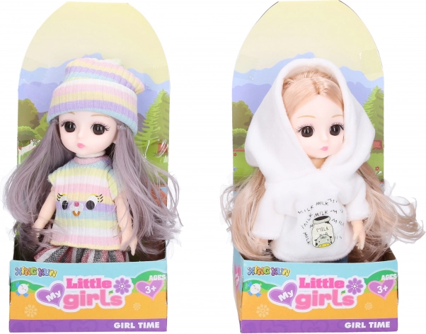 Prisrčna punčka v zimskih oblačilih, visoka 15 cm, bo razveselila vsakega malega ljubitelja iger. Ima gibljive sklepe za preprosto poziranje in prihaja v 4 stilskih barvnih različicah – bela, siva, rdeča in mavrična. Odlična izbira za kreativno igro in zbiranje.