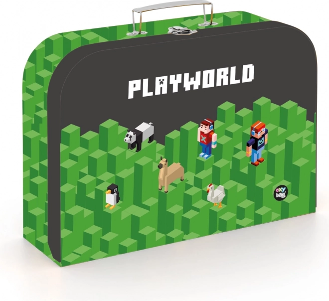 Otroški kovček Playworld je izdelan iz laminiranega kartona, obloženega z natisnjenim papirjem za privlačen videz. Zahvaljujoč kovinski zaponki se kovček varno zapre in ščiti notranjo vsebino.