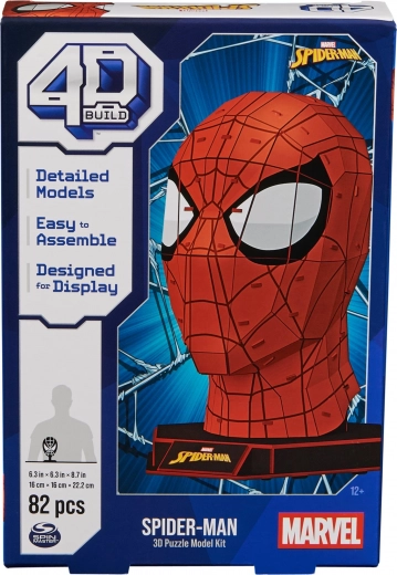 Ustvarite svojo ikonično glavo SPIDER-MAN s podrobnim 4D Build modelom brez potrebe po lepilu ali orodju. Komplet vsebuje 82 izrezljivih delov na 8 ploščah, trden podstavek z logotipom MARVEL SPIDER-MAN in jasna navodila. Končni model meri 16 × 16 × 22,2 cm in je idealen kot okras za sobo, igralnico ali vašo zbirko superjunakov.