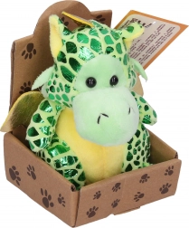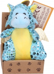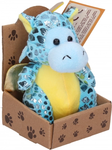 Ta plišasti zmaj prinaša veselje s svojo bleščečo obdelavo in kompaktno velikostjo 13 cm, zaradi česar ga zlahka pospravite v nahrbtnik ali postavite na polico. Nežen material je prijeten na dotik in vabi k crkljanju, medtem ko žive barve poskrbijo, da je privlačna dekoracija in sopotnik na poti.