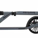 Lahek mestni skiro SporTrike v srebrni barvi ponuja aluminijast okvir, dve zavori (ročna kolutna in nožna), nastavljivo krmilo 85–99 cm ter gumijasta kolesa 190 mm za udobno in varno vožnjo v službo ali za zabavo.