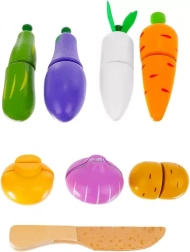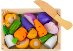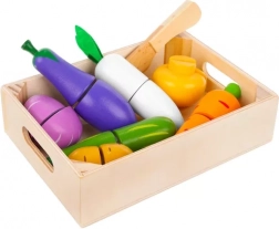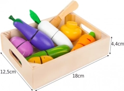 Ta leseni komplet zelenjave v kompaktni zabojčki je idealen za igro kuharja, trgovine ali gospodinjstva. Otroci lahko z varnim lesenim nožkom “režejo” zelenjavo, povezano z ježkom, nato pa jo znova spojijo. Realistične oblike in žive barve naravno spodbujajo igro in razvijajo domišljijo.