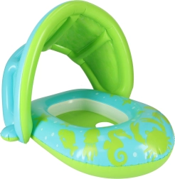 Uživajte v poletnih vodnih radostih z zaupanjem in mirom. Otroški plavalni stolček z odstranljivim napihljivim baldahinom ščiti občutljivo otrokovo kožo pred sončnimi žarki in nudi prijetno senco v bazenu ali ob morju.