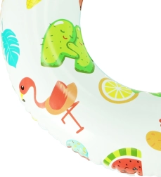 Uživajte v poletju na polno z barvitim plavalnim obročem BESTWAY. Zahvaljujoč kakovostnemu materialu in zanesljivemu ventilu je obroč stabilen, udoben in pripravljen na vsakodnevne vodne radosti. Igrivi motivi flamingov, sadja in sladoledov pritegnejo na prvi pogled in spodbujajo otroke k varnemu razposajenemu gibanju v vodi.