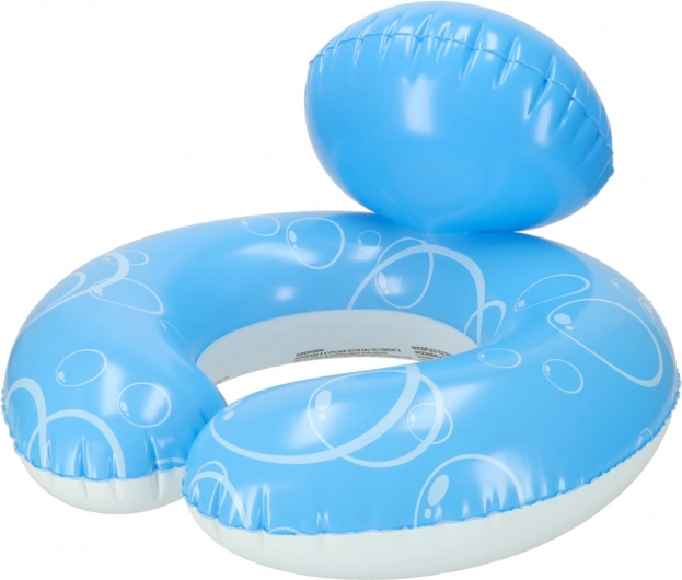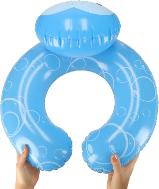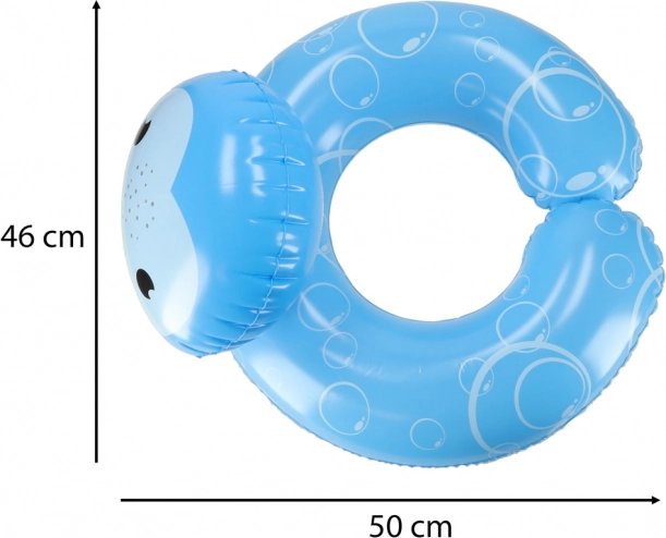 Praktične odpirajoče se stranice omogočajo nadenje obroča brez vlečenja preko glave, kar je udobno in hitro. Glavica živalice hkrati služi kot oprijem za boljšo stabilnost v vodi. Kompaktne mere 50 × 46 cm in enostavno shranjevanje v ploski embalaži ga delajo odličnega spremljevalca na dopustu in ob bazenu.