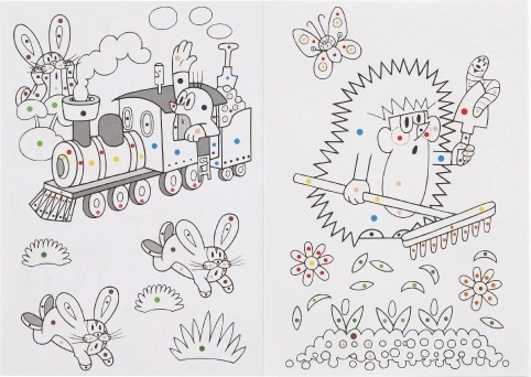 Barvne pike na ilustracijah vodijo otroke korak za korakom do samostojnega barvanja in krepijo samozavest pri prepoznavanju barv.