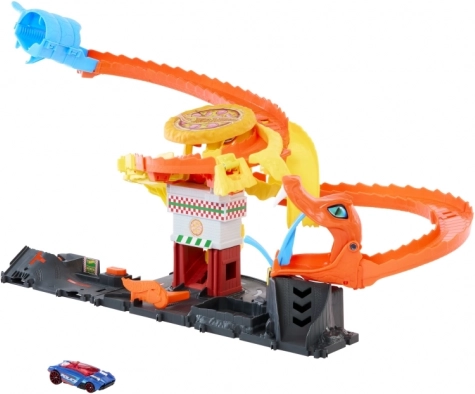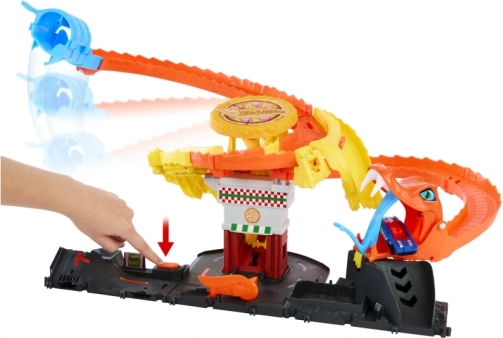 Soočite se z grozljivo kobro v piceriji in rešite mesto HOT WHEELS kot junaki iz serije »Let’s Race«! Ta akcijski set ponuja tri naključne poti, atraktivne pasti in dinamične kaskaderske elemente. Napete kobra ovire, 3 možne smeri vožnje in povezovanje z drugimi seti Hot Wheels City zagotavljajo neskončno zabavo. Vključuje 1 kovinski avtomobilček.