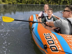 Za večje udobje je čoln opremljen z napihljivimi tlemi, varnostno vrvjo, speljano skozi vodila za zanesljiv oprijem in upravljanje, nosilci za vesla za varno shranjevanje med plovbo ter čvrstim sprednjim ročajem za enostavno prenašanje in splavitev v vodo. Lahka in kompaktna zasnova omogoča preprosto prevažanje in shranjevanje.