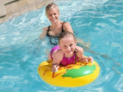 Vesel motiv z izrazitimi barvami pritegne otroško pozornost in spodbuja veselje do učenja ter igre v vodi.