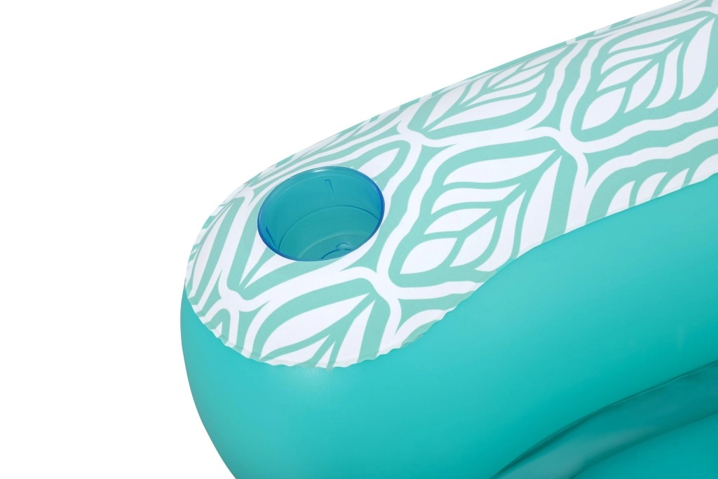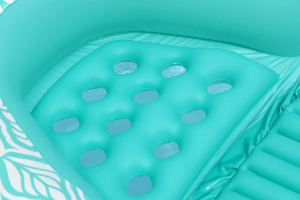 Premišljena zasnova s tremi zračnimi komorami povečuje stabilnost in nosilnost do 100 kg. Praktično držalo za pijačo poskrbi, da je osvežitev vedno pri roki. Trpežen PVC skupaj z varnostnimi ventili zagotavlja enostavno in varno napihovanje ter izpihovanje.