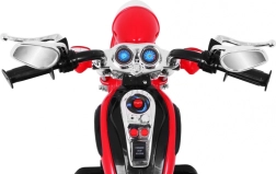 Motor je opremljen z osvetljenim stikalom, sprednjo LED lučjo in avdio panelom s 4 zvočnimi gumbi. Priklopite glasbo preko AUX in otrokom popestrite vsako vožnjo.