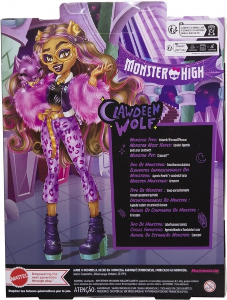 Odkrijte Clawdeen Wolf v drzni vijolični stilizaciji, ki potrjuje njen izbrušen občutek za modo. Zahvaljujoč premičnim sklepom jo zlahka nastavite v različne poze in ustvarite svoje monstruozne zgodbe. Del kompleta je tudi njen zvesti ljubljenček Crescent, pripravljen na neskončne pustolovščine.